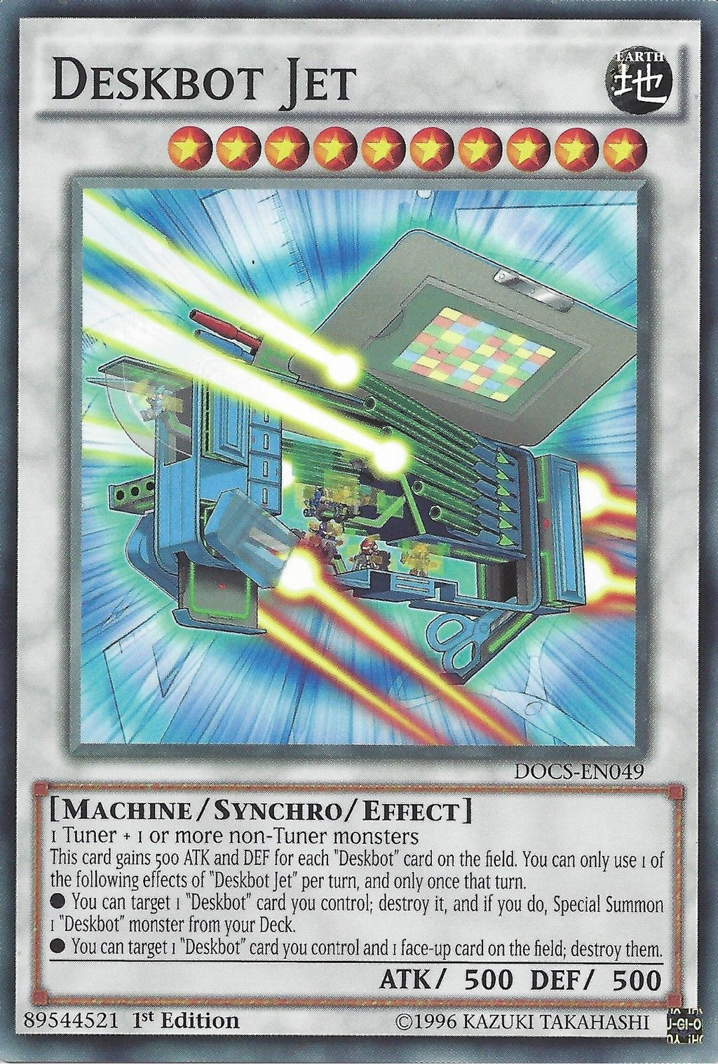1 Tuner + 1 or more non-Tuner monsters This card gains 500 ATK and DEF for each "Deskbot" card on the field. You can only use 1 of the following effects of "Deskbot Jet" per turn, and only once that turn. • You can target 1 "Deskbot" card you control; destroy it, and if you do, Special Summon 1 "Deskbot" monster from your Deck. • You can target 1 "Deskbot" card you control and 1 other face-up card on the field; destroy them.