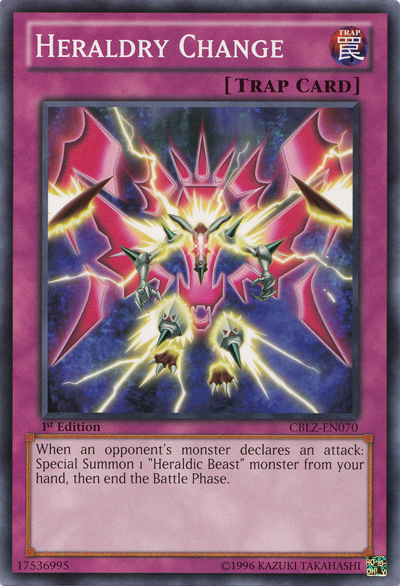 When an opponent's monster declares an attack: Special Summon 1 "Heraldic Beast" monster from your hand, then end the Battle Phase.