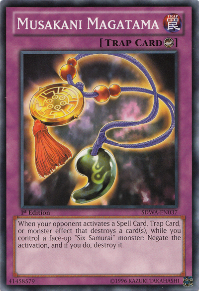When your opponent activates a Spell Card, Trap Card, or monster effect that destroys a card(s), while you control a face-up "Six Samurai" monster: Negate the activation, and if you do, destroy it.