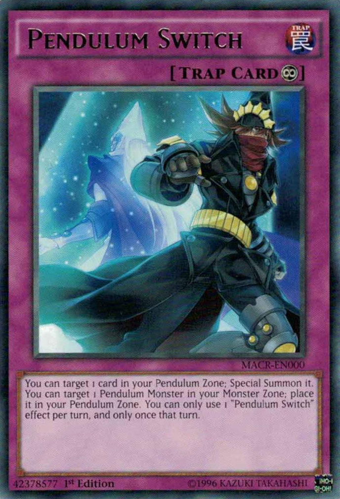 You can target 1 card in your Pendulum Zone; Special Summon it. You can target 1 Pendulum Monster in your Monster Zone; place it in your Pendulum Zone. You can only use 1 "Pendulum Switch" effect per turn, and only once that turn.