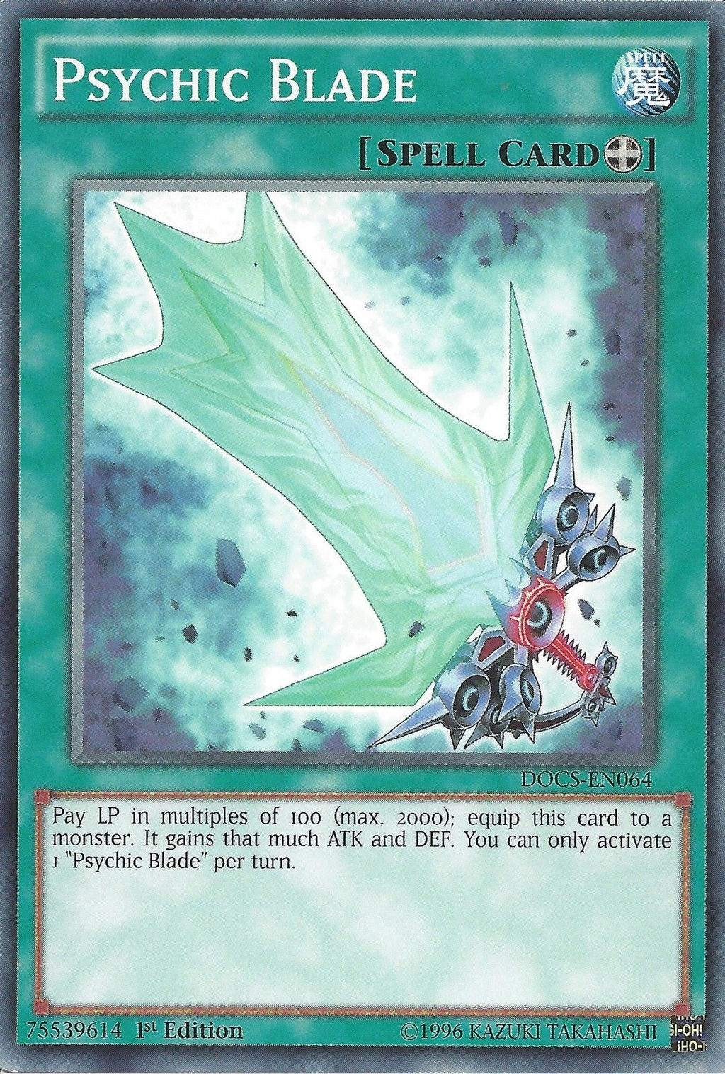 Pay LP in multiples of 100 (max. 2000). Equip this card to a monster. It gains that much ATK and DEF. You can only activate 1 "Psychic Blade" per turn.