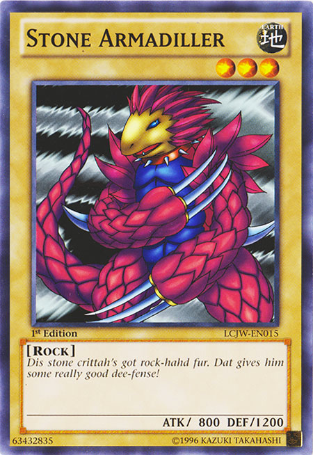 Dis stone crittah's got rock-hahd fur. Dat gives him some really good dee-fense!
