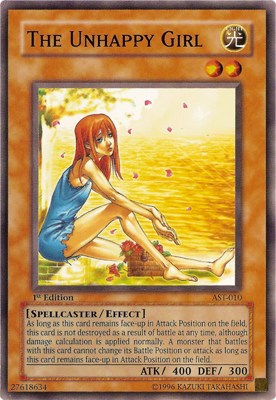 As long as this card remains face-up in Attack Position on the field, this card is not destroyed as a result of battle at any time, although damage calculations is applied normally. A monster that battles with this card cannot change its Battle Position or attack as long as this card remains face-up in Attack Position on the field.