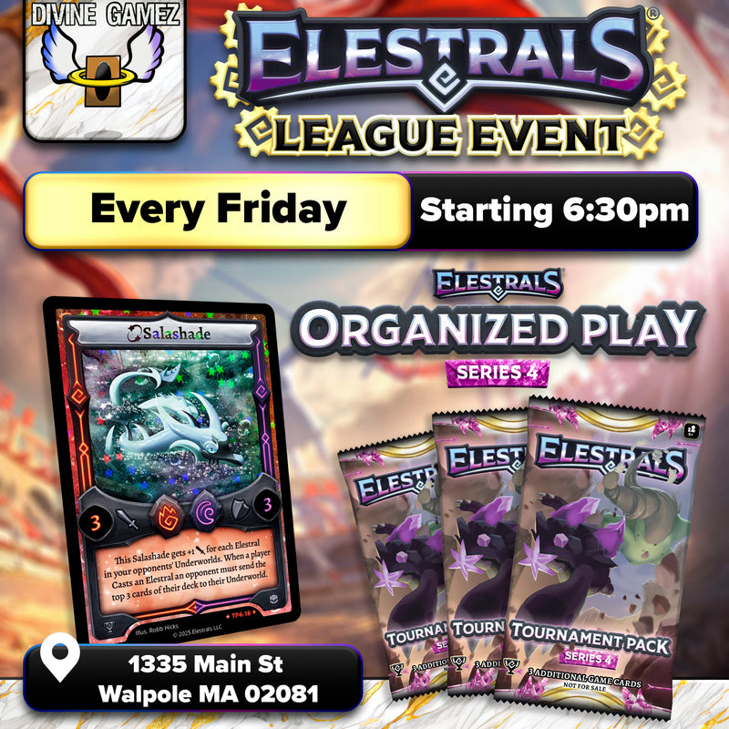 Join us every Thursday and Friday night for exciting Elestrals tournaments! All skill levels are welcome. See you there!
