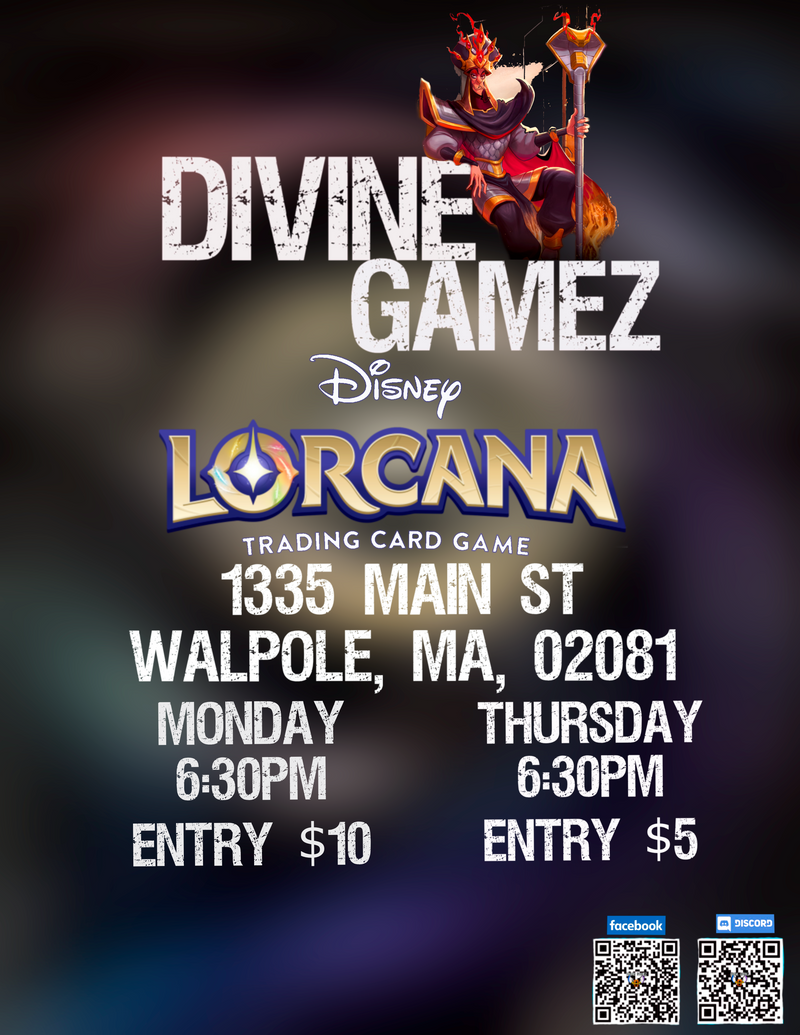 Join us for exciting Lorcana tournaments every Monday and Thursday! Whether you're a seasoned Illumineer or just starting out, everyone is welcome. See you there!